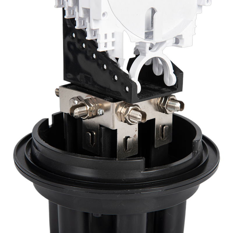GSGSC107 spojni zatvarač od optičkih vlakana uključuje hladnjak koji pomaže regulirati temperaturu unutar kutije, sprječavajući pregrijavanje i osiguravajući optimalne performanse. Crna baza ima više priključaka za jednostavan ulaz i izlaz kabela, pružajući sigurne i organizirane priključne točke za optičke kabele.